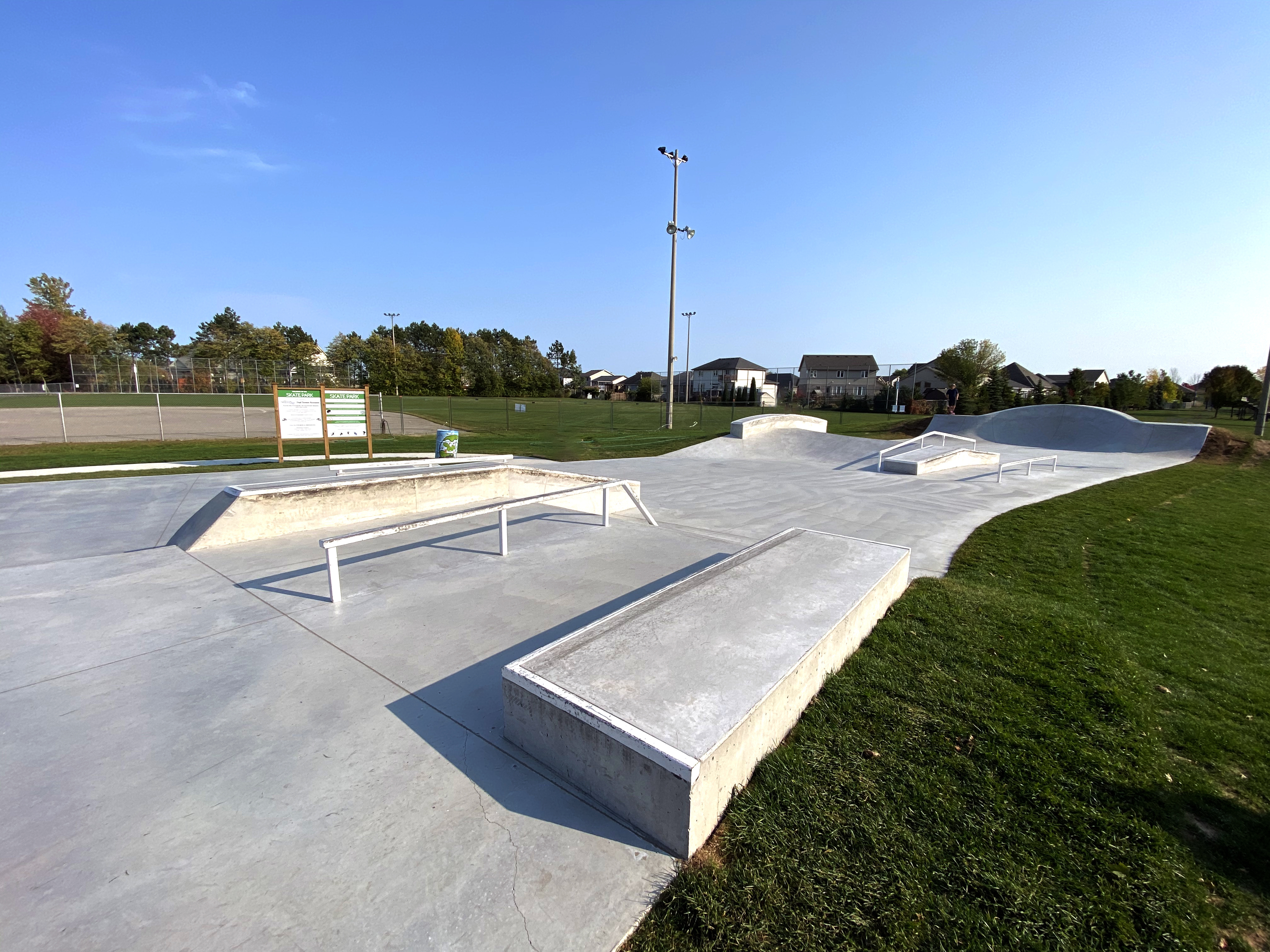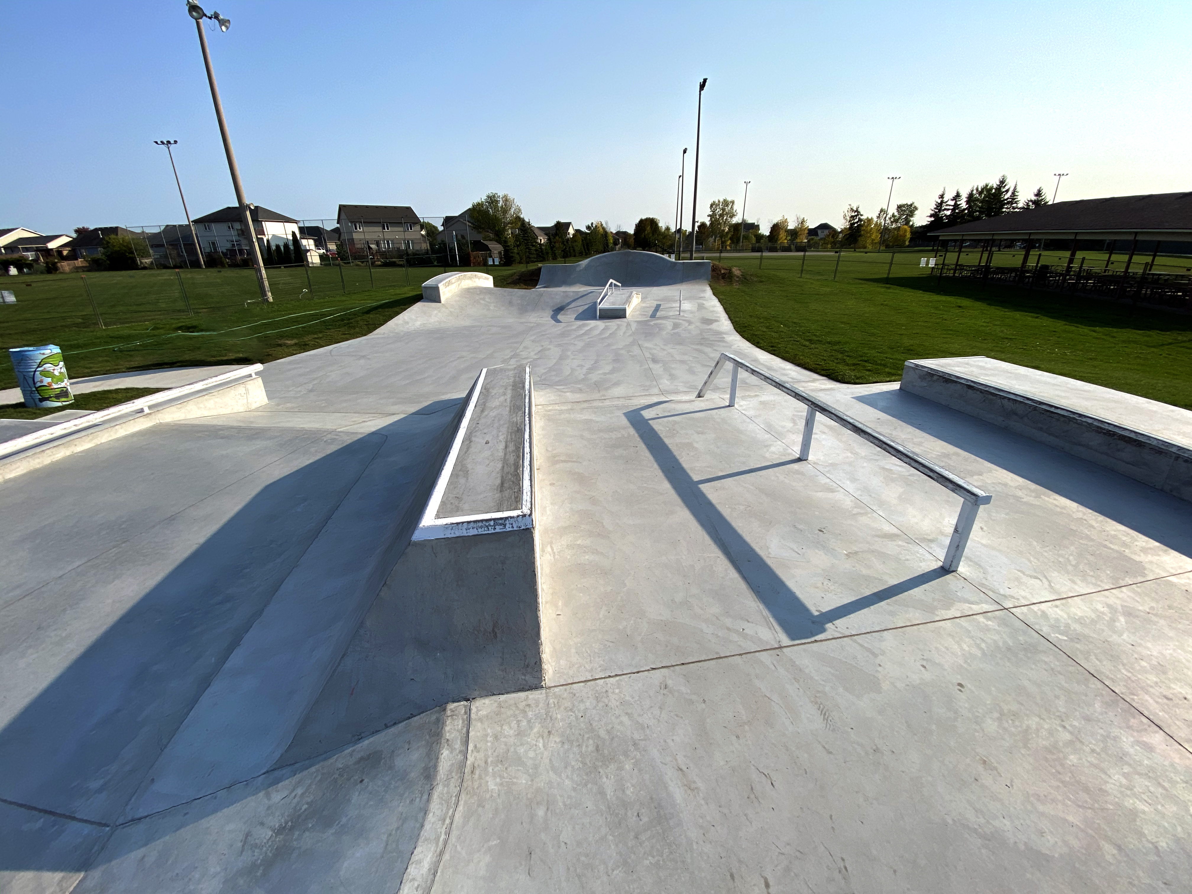 This fresh park in Niagara’s wine country has some fun obstacles in a long narrow run, and even a steep pool coping quarter at one end.